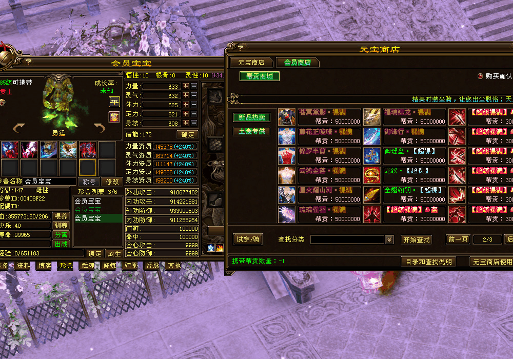 【会员套餐】:200元=20亿门贡+20亿属性+秒杀武器+隐藏状态+会员宝宝+靓幻彩名
