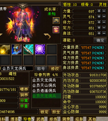 【潜能加法】:[天龙]力量:450万 灵力:230万 体力:390万 定力:250万 身法:2082500000